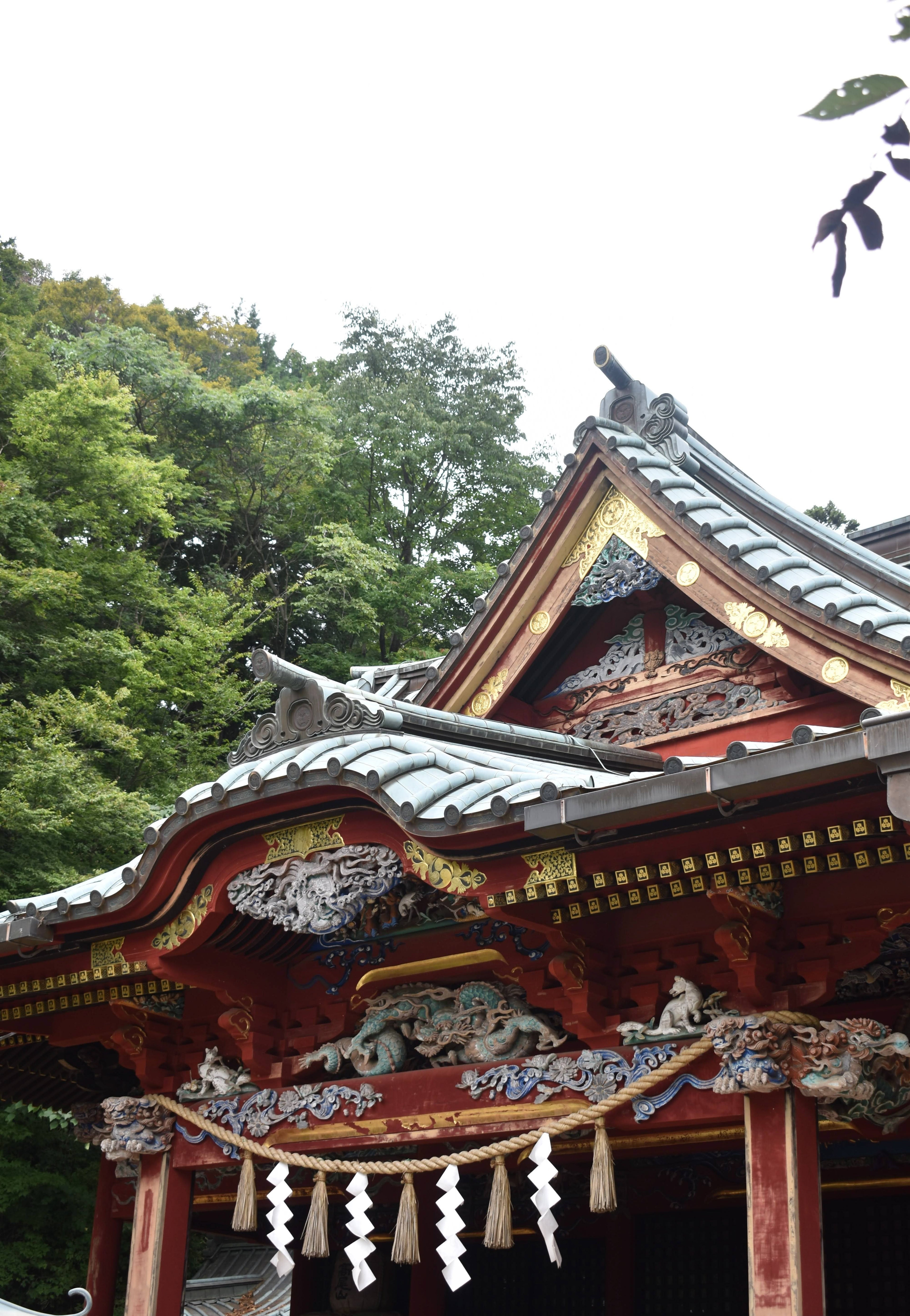 Un complexe de bâtiments bouddhistes magnifiques avec des statues impressionnantes de tengu, des créatures mythologiques protectrices de la montagne.